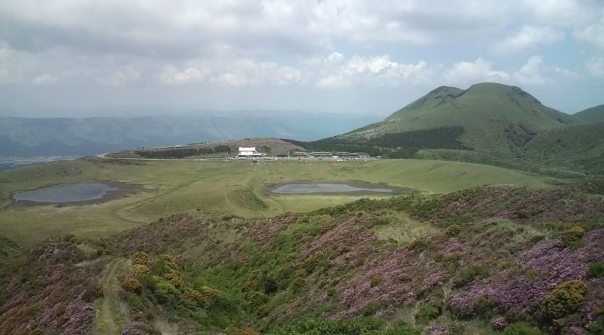木曜日は何故かいつも雨のような気がする。。。しかし今日(6/3) は快晴!!!陽子(嫁さん)と一緒に阿蘇五岳の一つ、烏帽子岳登山に行ってきました。草千里側から登れば、比較的楽に登れるとのことであるが、今日は垂玉温泉登山口からのとりつきで山頂を目指す。登山口には山頂まで5Kmの標識、登山ガイド本には山頂までの所要時間は2時間50分、往復4時間50分と書いてあった。10時55分に登山開始、子どもの保育園のお迎えがあるので、最低でも15:30分までに下山し、清和に戻らないといけない。下山後は垂玉温泉にお世話になりたいところだが、今日は諦めるか??山頂で昼飯食べる時間あるかいな??なんて考えながら登山開始した。